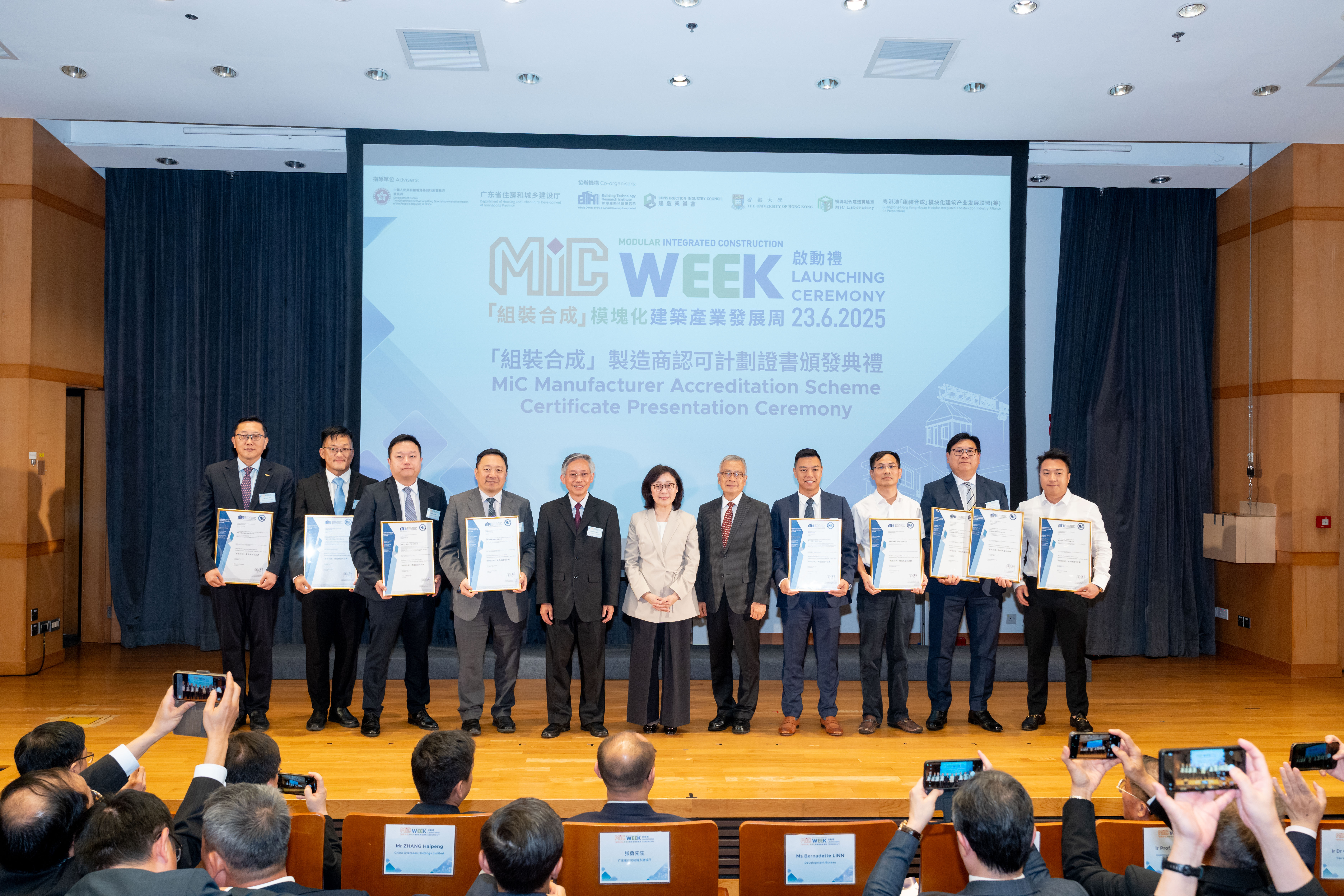 At the launching ceremony on June 23, BTRi presented accreditation certificates to the first batch of eight manufacturers accredited under the Modular Integrated Construction Manufacturer Accreditation Scheme (MiC-MAS), recognizing their outstanding performance in quality and production standards.