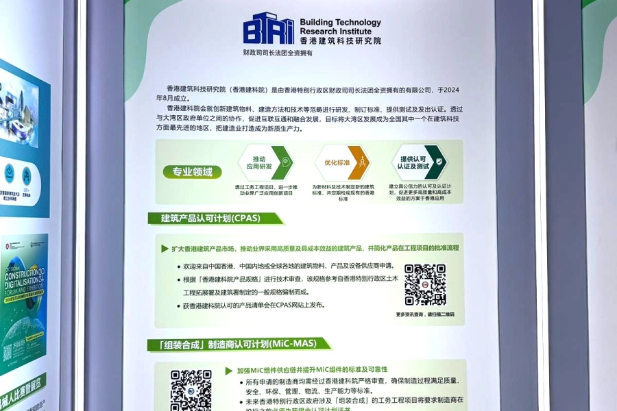 From 6 to 9 November 2025, Building Technology Research Institute (BTRi) was invited by the Construction Industry Council (CIC) to exhibit at the 22nd China International Exposition of Housing Industry & Products and Equipment for Building Industrialization (Housing Expo) in Beijing. During the event, BTRi highlighted its “Construction Product Accreditation Scheme (CPAS)” and the “Modular Integrated Construction Manufacturer Accreditation Scheme (MiC-MAS)”. Both schemes welcome applications from Mainland suppliers of construction materials, products, and equipment, and manufacturers of MiC. We are committed to supporting Mainland enterprises to "go global" and seize opportunities, as well as developing the Greater Bay Area into one of the regions with the most advanced construction technologies in the country.