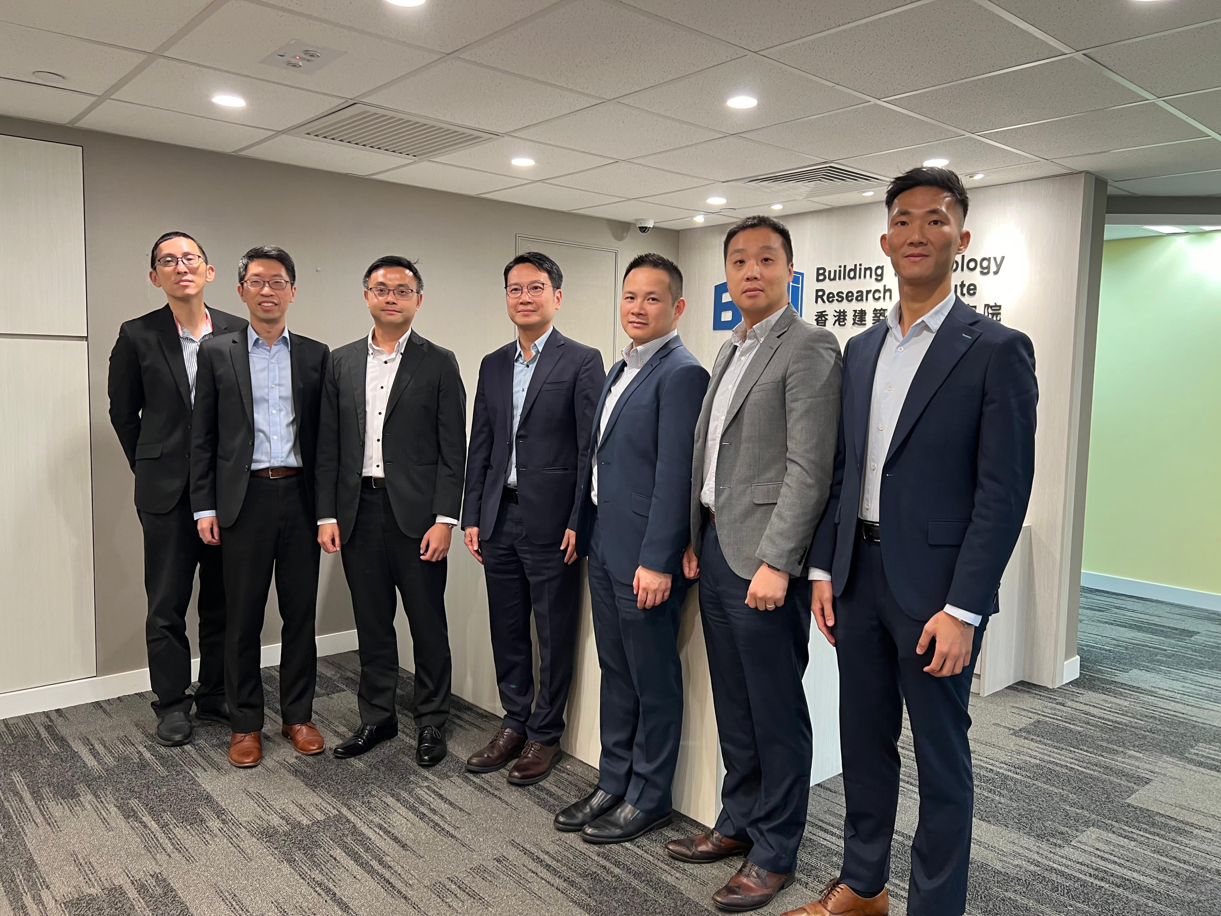 The Deputy Chief Fire Officer (Licensing & Certification Command) of the Fire Services Department, Mr. TANG Wing-wah (middle), visited BTRi office with this colleagues and conducted meeting with the Deputy Chief Executive Officer of the BTRi, Mr. CHOW Sui-ping (third left).